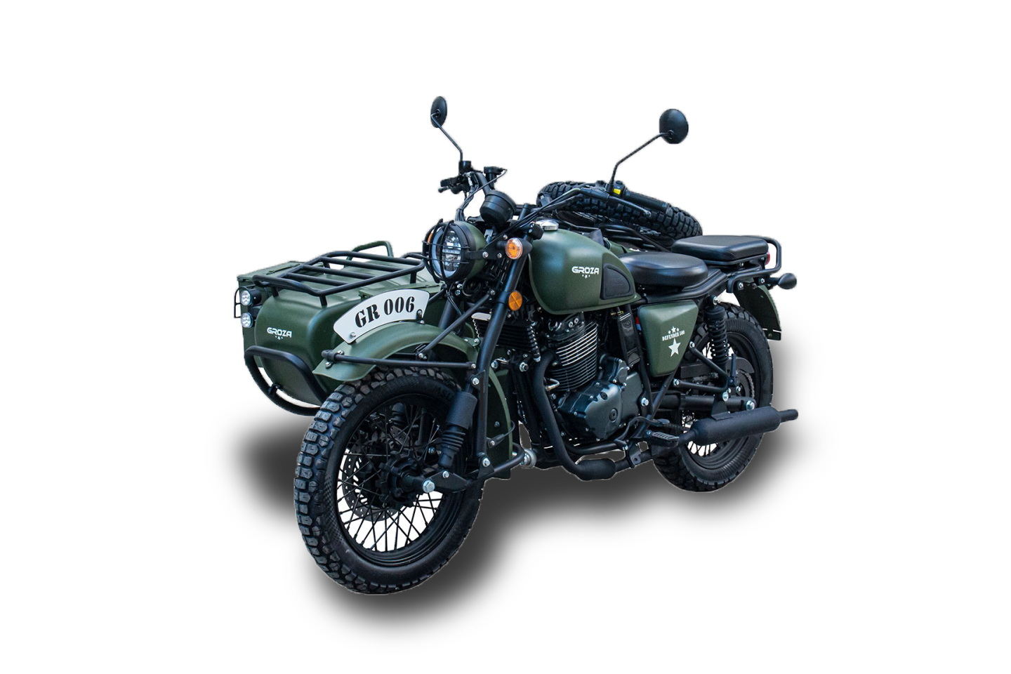 GROZA DEFENDER 500 (2023 г.) - мотоцикл с коляской создан как для путешествий, так и для комфортного передвижения по городу, семейных поездок, а также для вылазок по лёгкому бездорожью. Оснащён экономичным 470-кубовым инжекторным двигателем с масляным охлаждением и системой электронного впрыска топлива (EFI). Надежный и производительный. Мотоцикл в классическом виде с современными чертами: мягкое и обшитое кожей удобное сиденье, 13-литровый бензобак с приличным запасом хода, запасное колесо в комплекте, багажная ёмкость в коляске и усовершенствованная комфортная коляска с ремнём безопасности. Дизайн мотоцикла выдержан в советской стилистике с особым вниманием к деталям. На мотоцикле можно проехать практически где угодно. Модель комплектуется с ПТС, а значит на ней можно разъезжать и по дорогам общего пользования. Идеальный вариант для ценителей и тех, кто привык к комфорту.